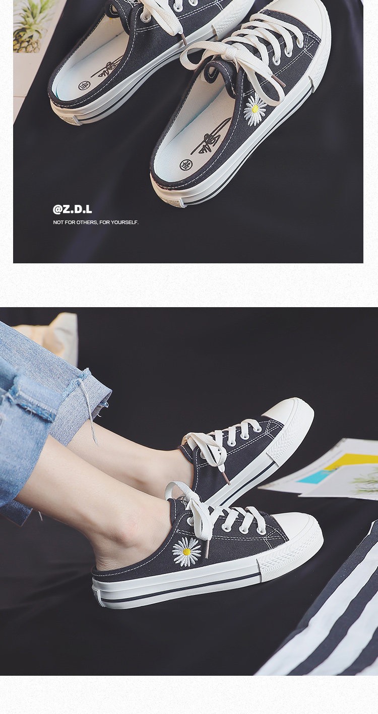 ベルメルのハ-ファンスの女子学生は韩国版のかと思う怠惰な靴を履くために白い靴を踏んで、2020夏の新型の黒の菊の花の半分は37を頼みます。
