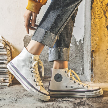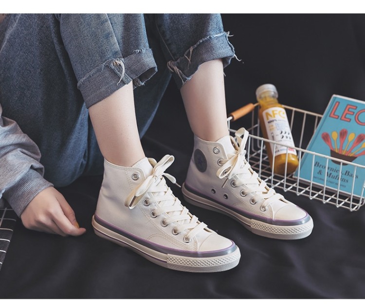 夏沫Canbars女の子通气2020夏韩版学生百合高帮平底カジュア小仙女拼色板靴女白37