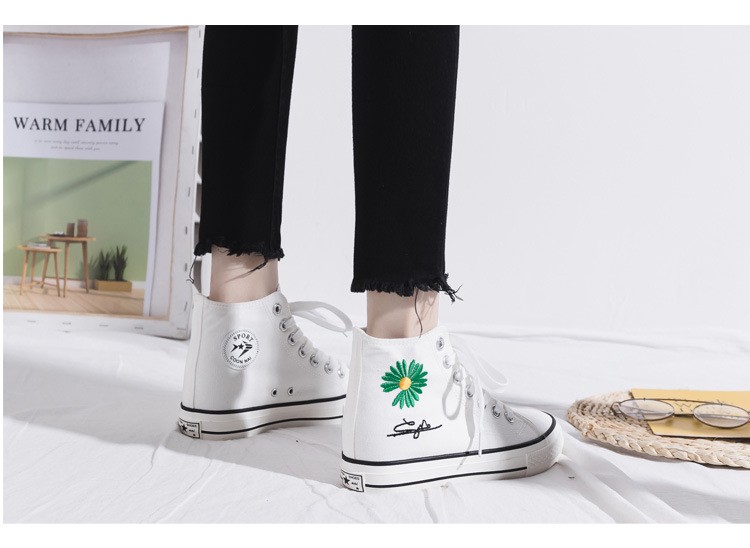 • 商品の名称:新型の権志龍は同モデルの小雛菊高帮キャンバスの女性レニール内で女布の靴の百合韓版の女子学生を高めて6センチメートルの板の靴の女性の黒色の36を高めます。