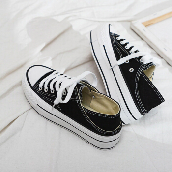 梦娇玲キャンバス春夏季运动学生ボブスポーツツ黒厚底キャンバス36