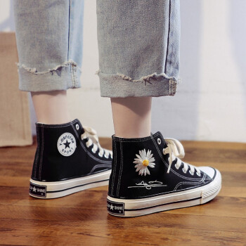 • 商品名称:夏沫キャバクルス女韓版高帮2020冬通気滑り止め刺繍小雛菊学生カジュアル板靴黒38